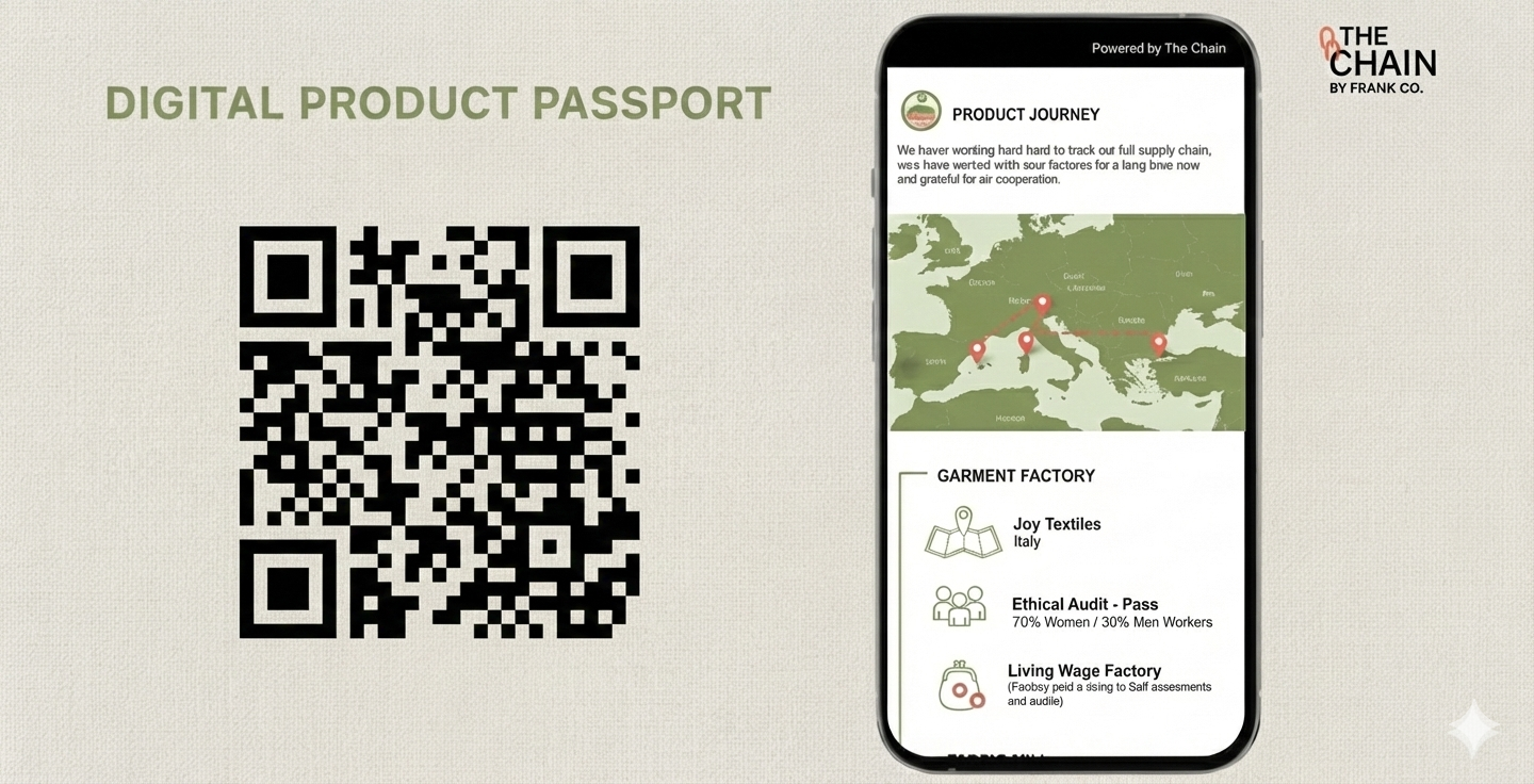 Consultancies such as Frank Impact Company can support this process. We help brands compile verified data, map supply chains, draft sustainability and traceability policies, and use our proprietary platform, The Chain platform, to generate robust, regulation-ready DPPs embedded directly on garments.